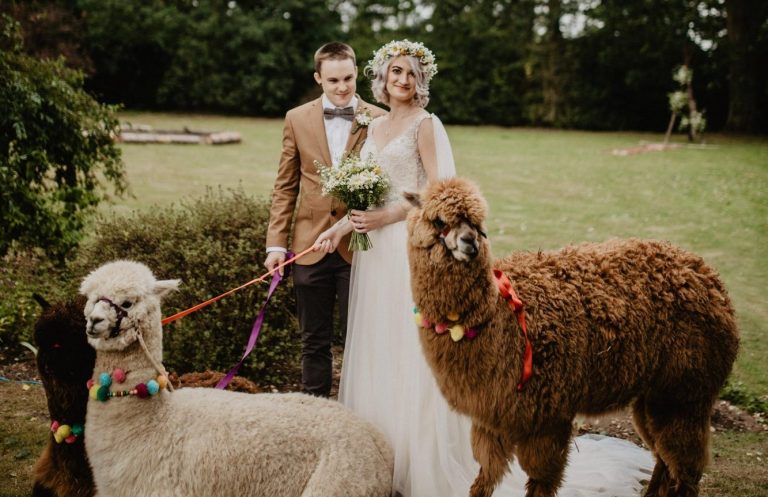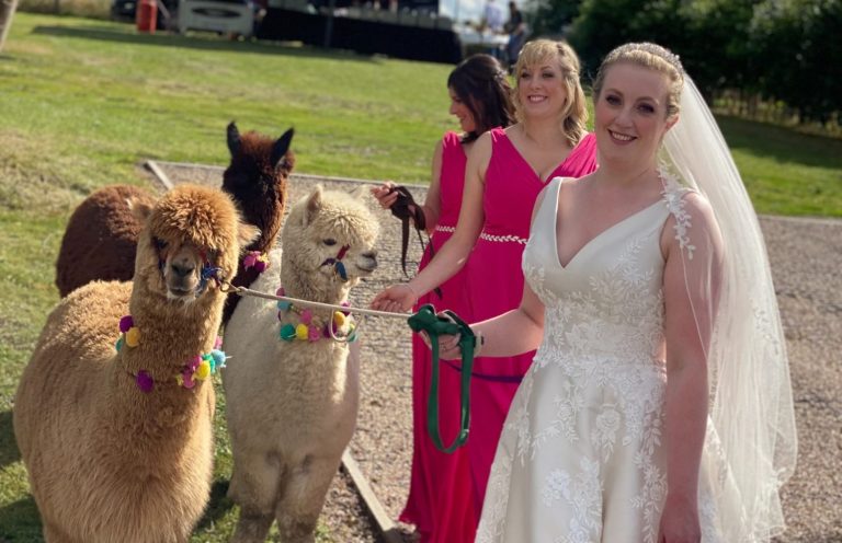 4 Alpacas, 2 Handlers, Alpaca walking experience for the Bride & Groom.