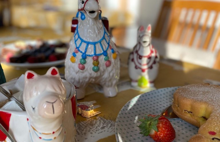 Enjoy afternoon tea with the Alpacas. We can cater for up to 12 people in one sitting. The cost of a 2.5 hour session with the alpacas including afternoon tea is £40pp (this does not include a walk) with a minimum of 4 people per booking, unless we are able to match you with another small group booking. If you have any specific requirements please contact us and we will do our best to accommodate anything you may need. If you would like to add an hours walk onto your package before the afternoon tea this is an additional £10pp.